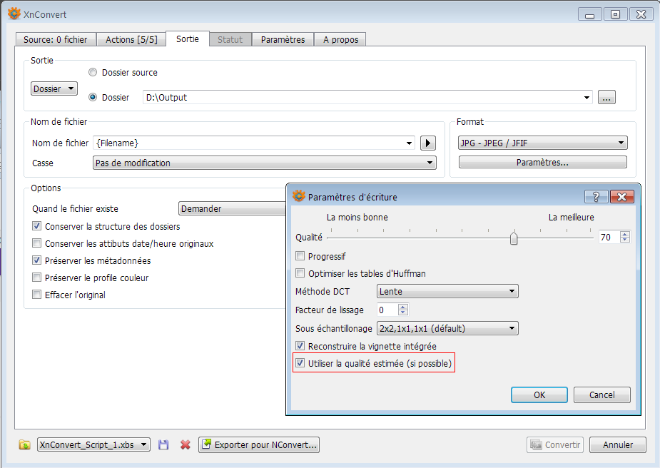 Vous avez essayé avec 'Utiliser la qualité estimée (si possible)' comme en XnView ?