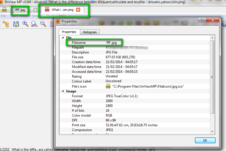 Re: 0.60 win-x86: Properties dialog of previous image file