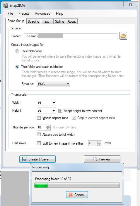 I am now running it in the background to create multiple sheets of thumbnails in subfolders.