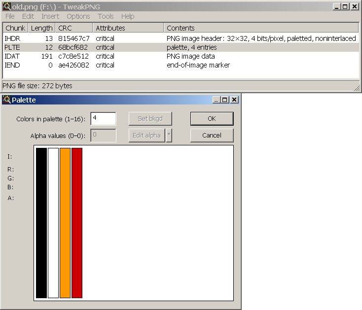 But that shows the number of colours??I used tweakPng to display the file details and noticed the palette size increased.