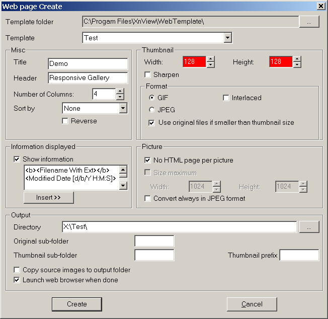 XnTriq wrote:Unfortunately, I always have to manually edit XnView's HTML output, because there currently is no way to retrieve the values of Width and Height from Create » Web Page... » Thumbnail.