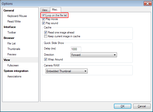 Related topic: XN 2.23 - "View Thumbnails Panel" changed order of filesXnView Wiki (UI-less Settings » [url=http://www.xnview.com/wiki/index.php/UI-less_Settings#Browser]Browser[/url]) wrote: