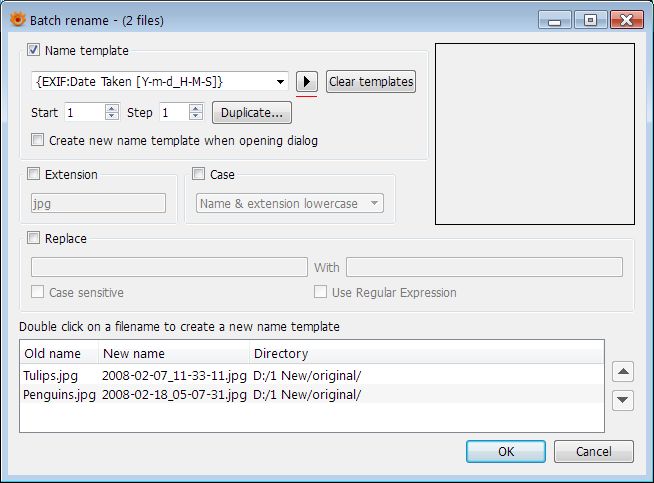 so I want to rename the files, and I want to have only the creation date (including time) as file name without any additional number ...