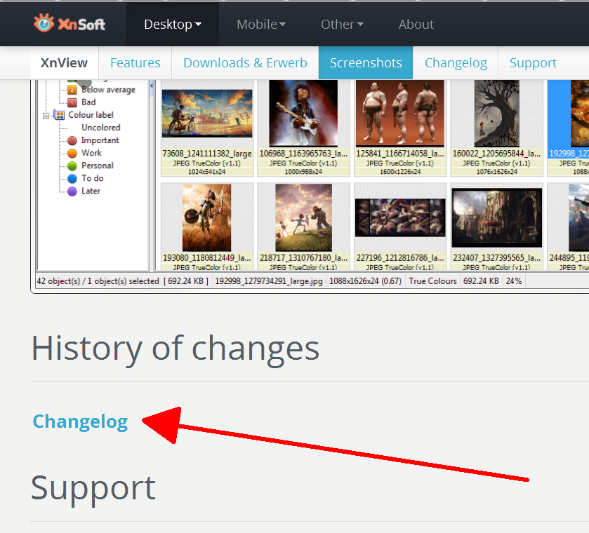 For XnView, the changelog links to 2.32; for XnConvert it is dead ...