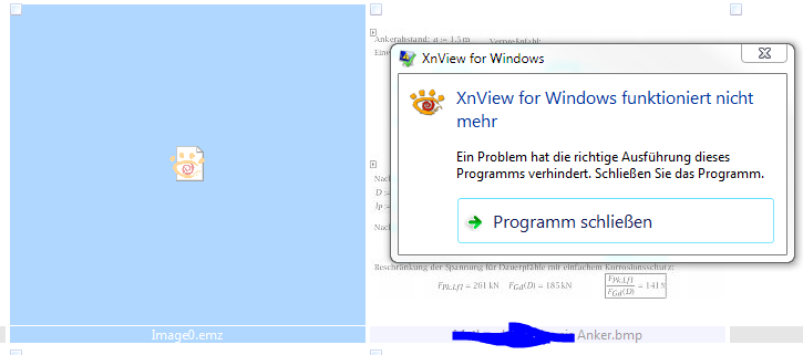 By doubleclicking the file, XnView crahes with the windows message "XnView für Windows funktioniert nicht mehr/XnView for Windows doesn't work any more".
