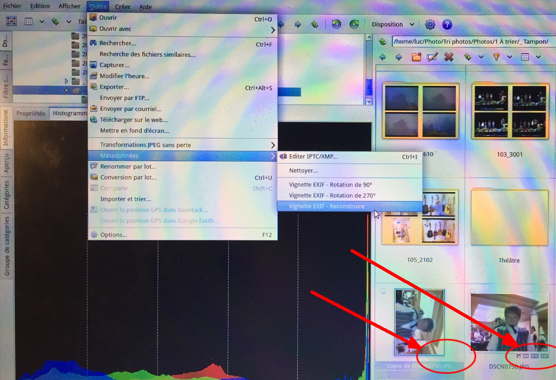 ...And, as shown in the same screenshot, once rotated a picture, when I want it to have its thumbnail reconstructed, I'm losing all its metadata.
