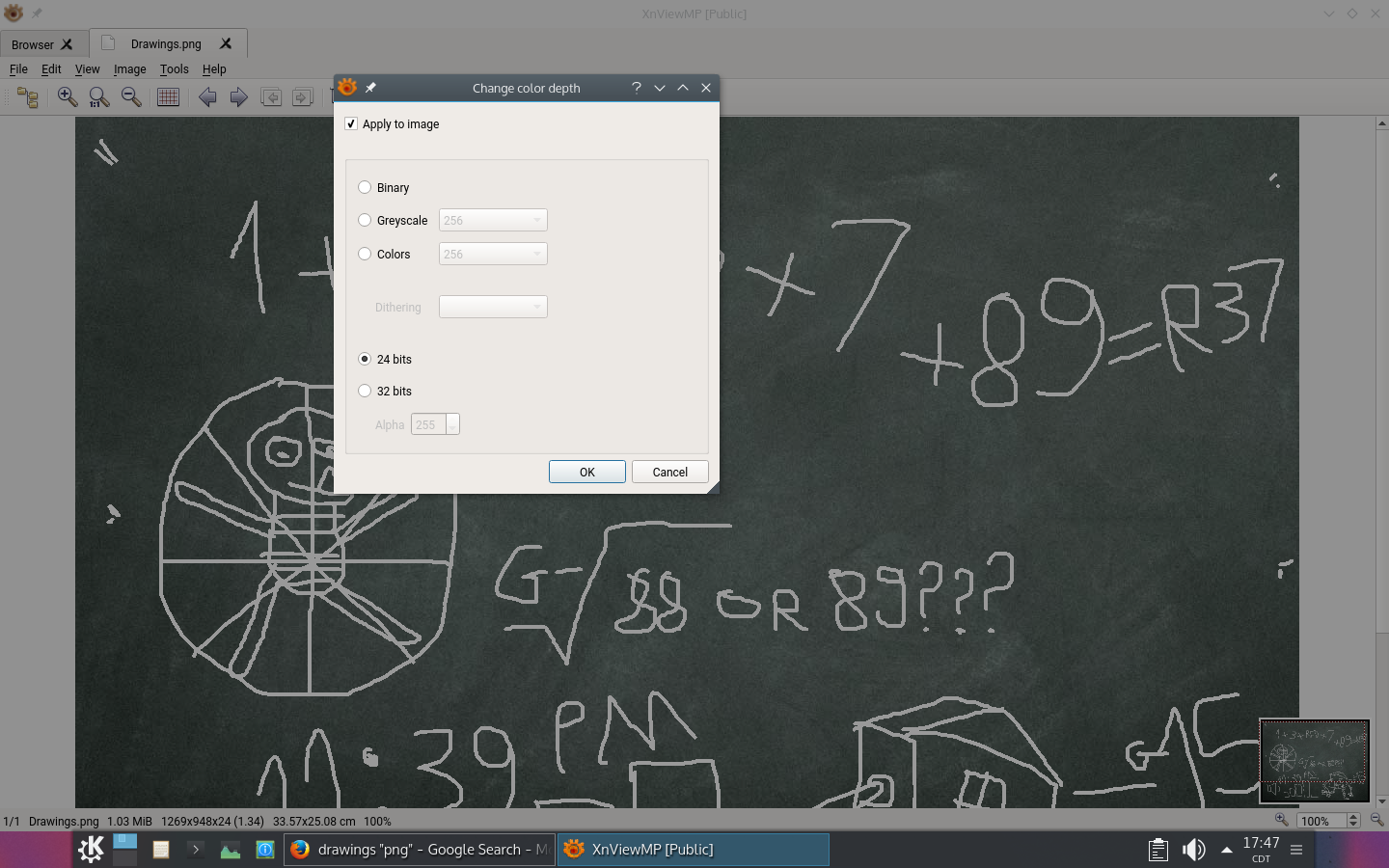 4. Zoom into the image. XnView displays the Pan tool in the bottom-right corner. The image in the Pan tool looks fine. (correct).