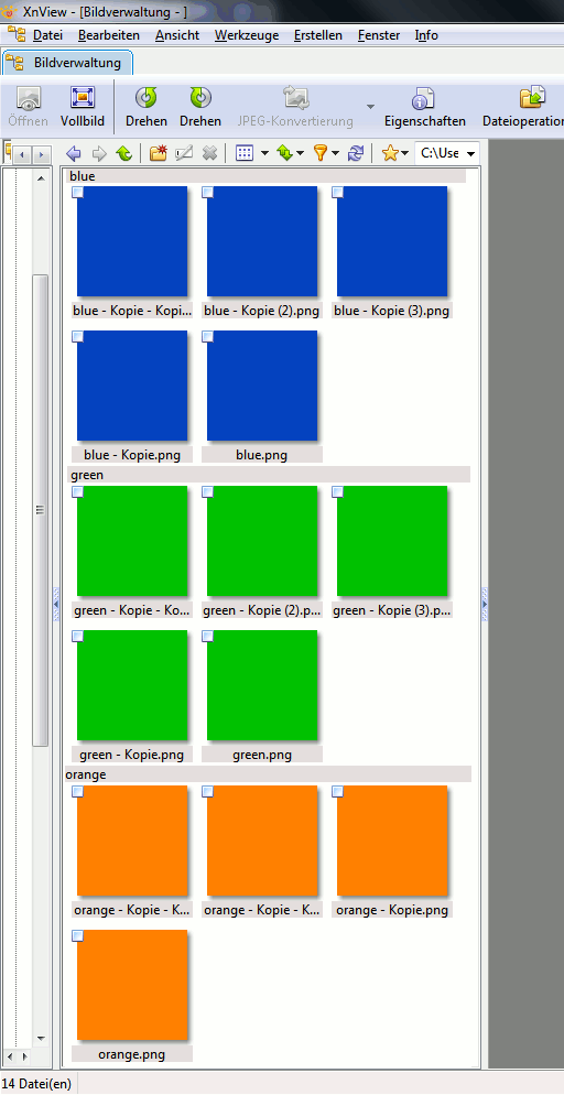 This is how it looks now (images of the same color are in the same subfolder): and has messy results like this for sorting depending on filenames (order by name should sort by full path name, not just filename): Instead I'd find it very helpful if it looked like this:
