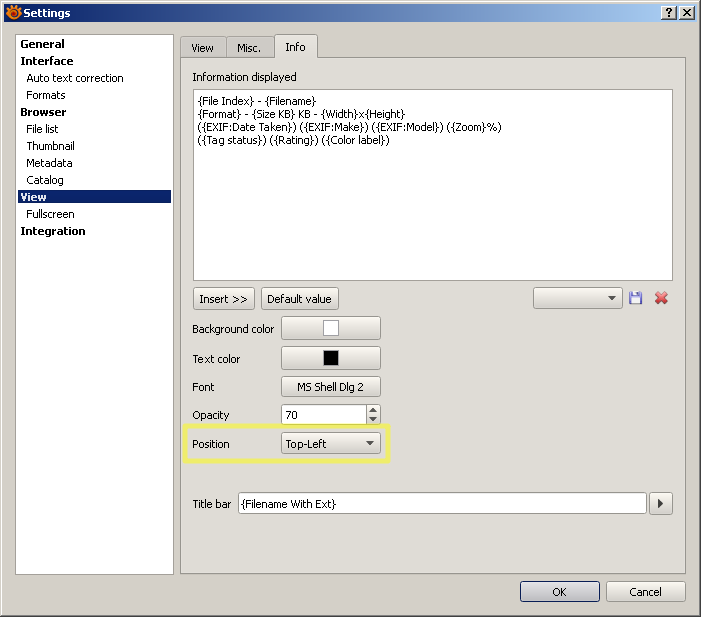 Just found the setting for the position of the info which is used both for Viewer and Fullscreen: