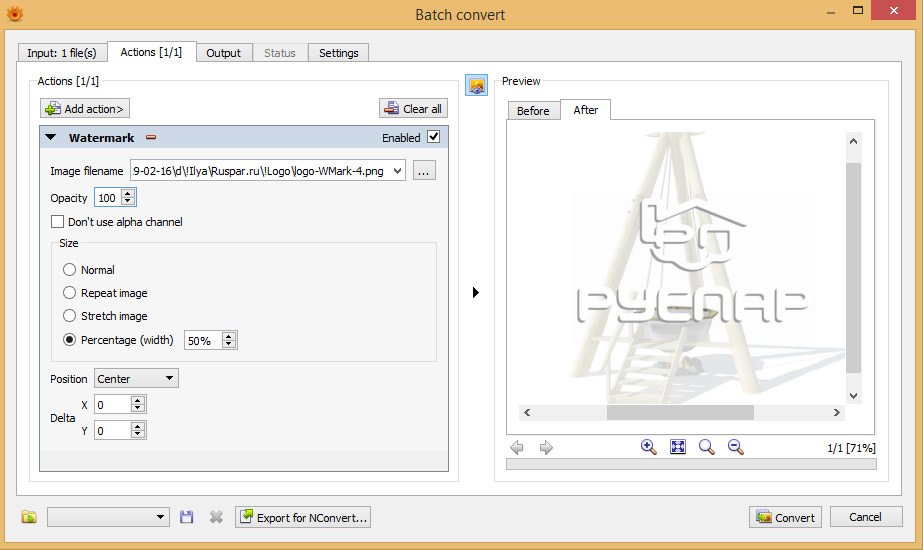And when I add transparent PNG as watermark (see settings in screenshot) to PNG source file I have strange rectangle in result file (see attach)