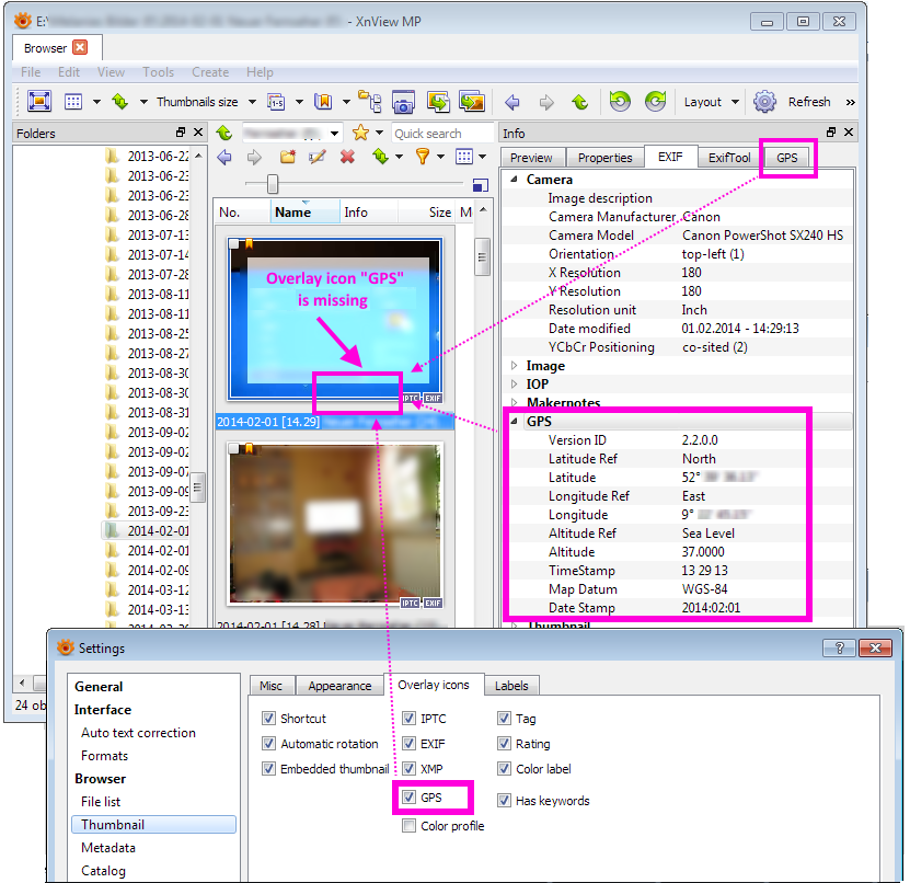 Effect: XnViewMP fails to show (mostly) the GPS overlay icon although there are correct Exif/IPTC GPS data