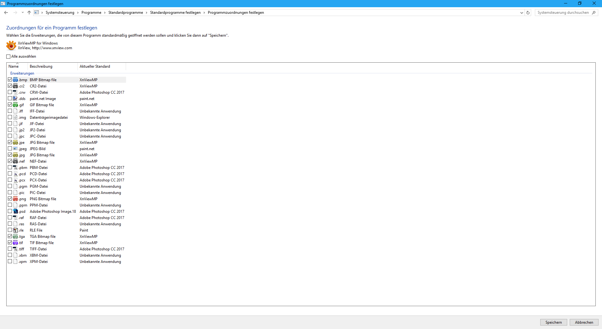 However, while it has no problem reading all kinds of files, it does not appear as program in the dropdown for selecting a default app for images, so I went ahead and selected to choose defaults by app. In that list, XnViewMP appears, but has only 30 supported file types. Types like DNG or ARW do not show up.