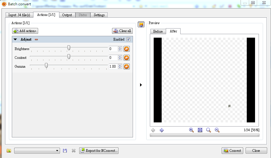 The preview window aside batch actions show only alpha channel. Since most batch actions are applied to RGB channels, it's difficult to see the changes. And it's no way to disable alpha channel in batch actions preview.