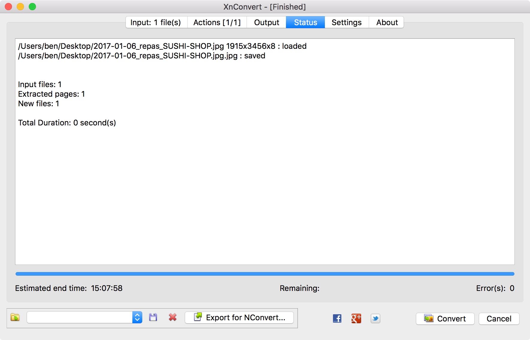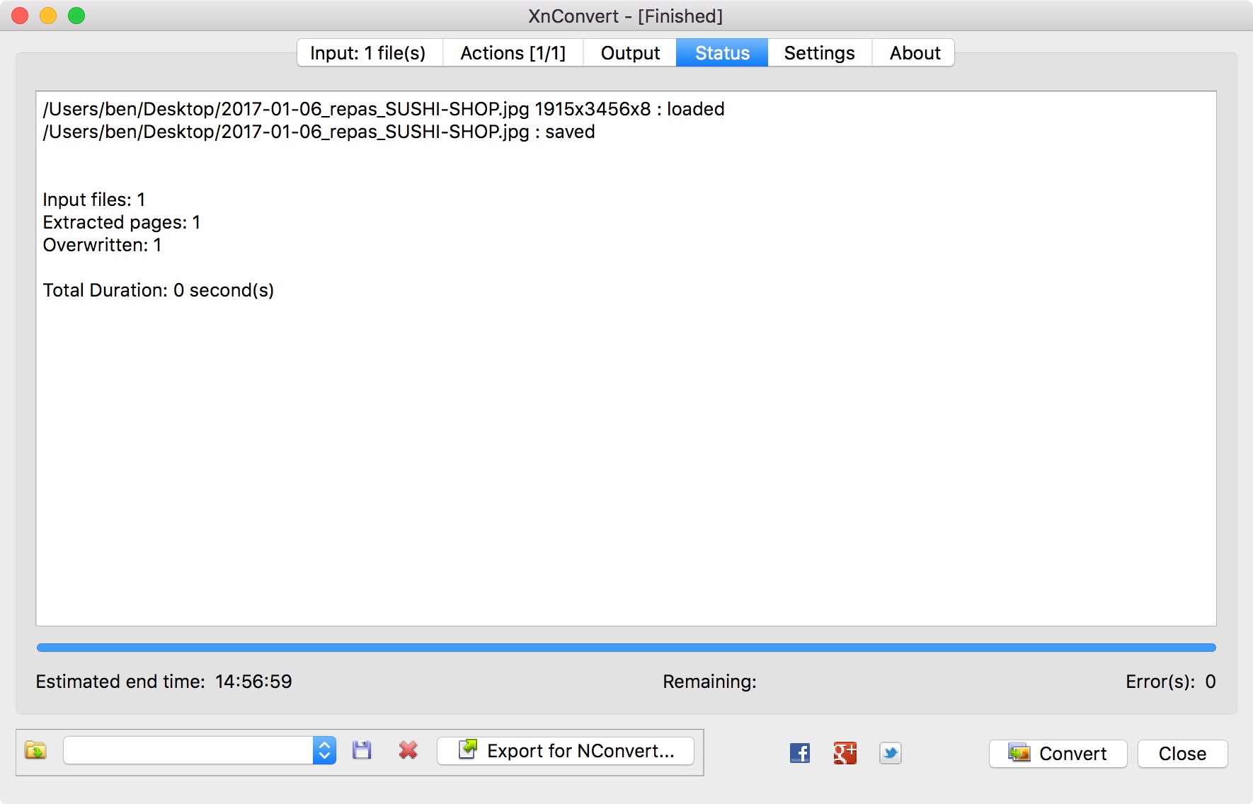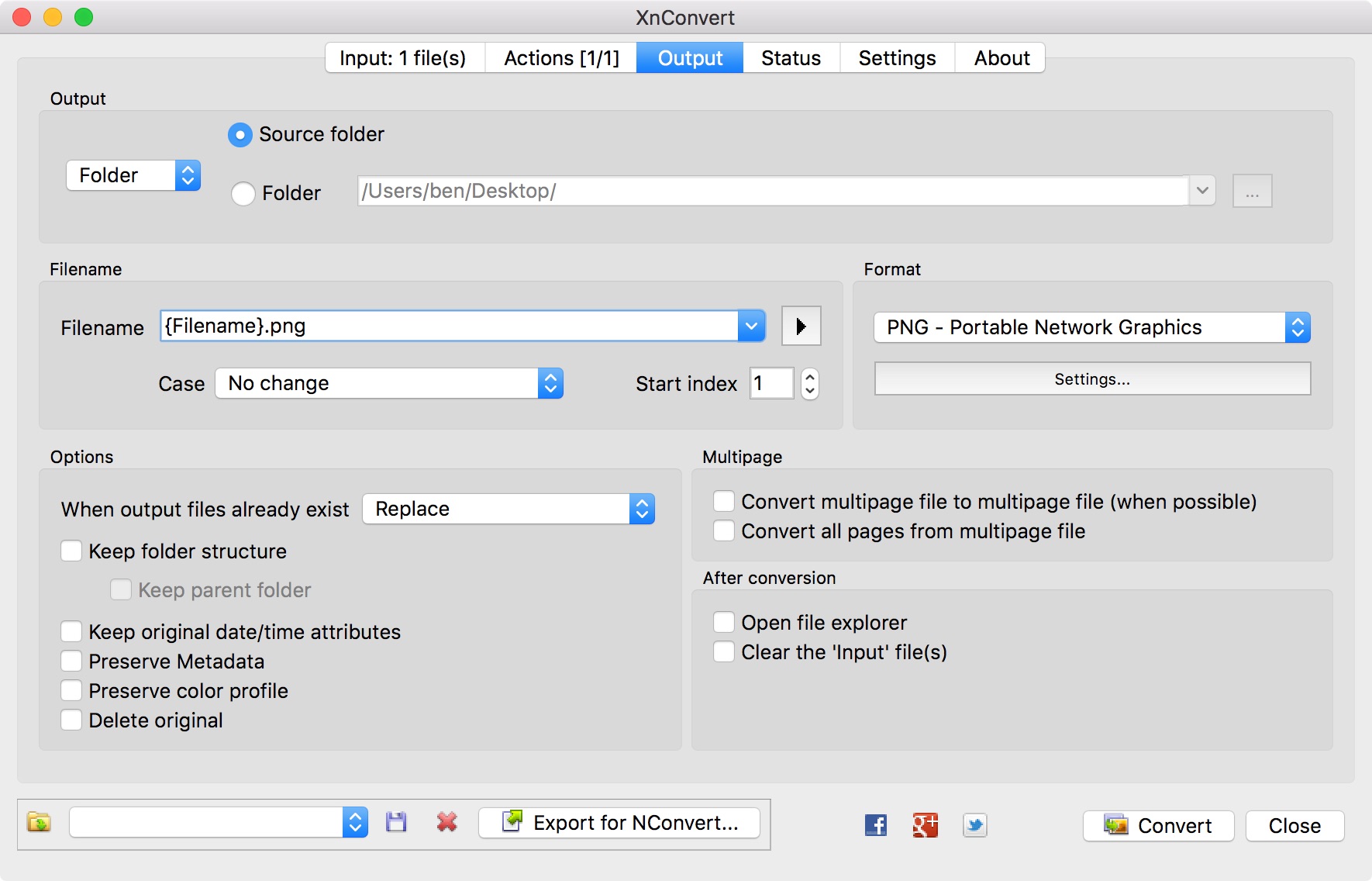 In XnConvert 1.75, when converting to another format, the extension is kept as the original. For instance, I have a bunch of JPG files that I want in PNG 256 colors.
