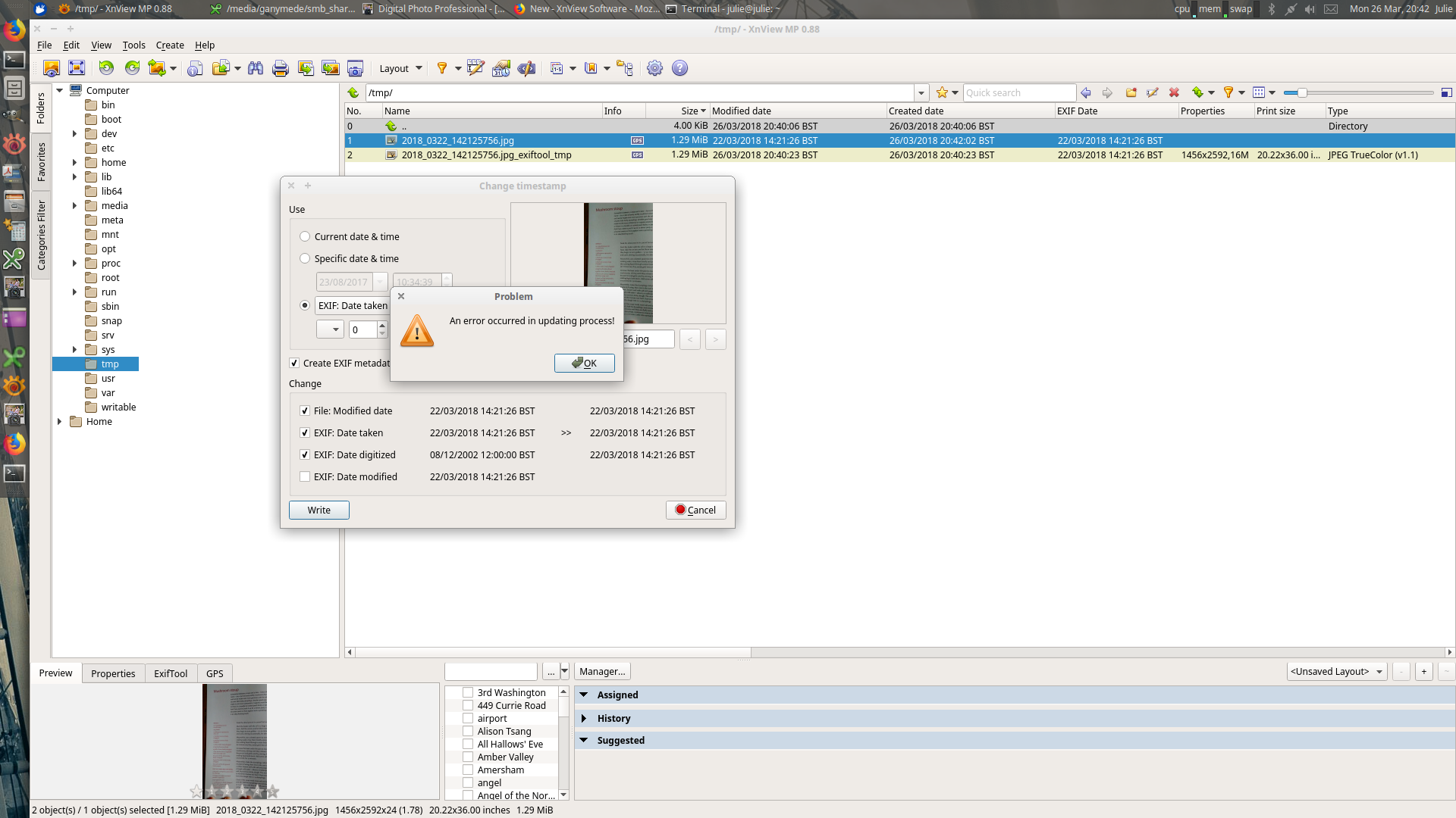 This can all be done over again, and if the ".jpg_exiftool_tmp" file is present in the folder, then an error is thrown. (See screenshot.)