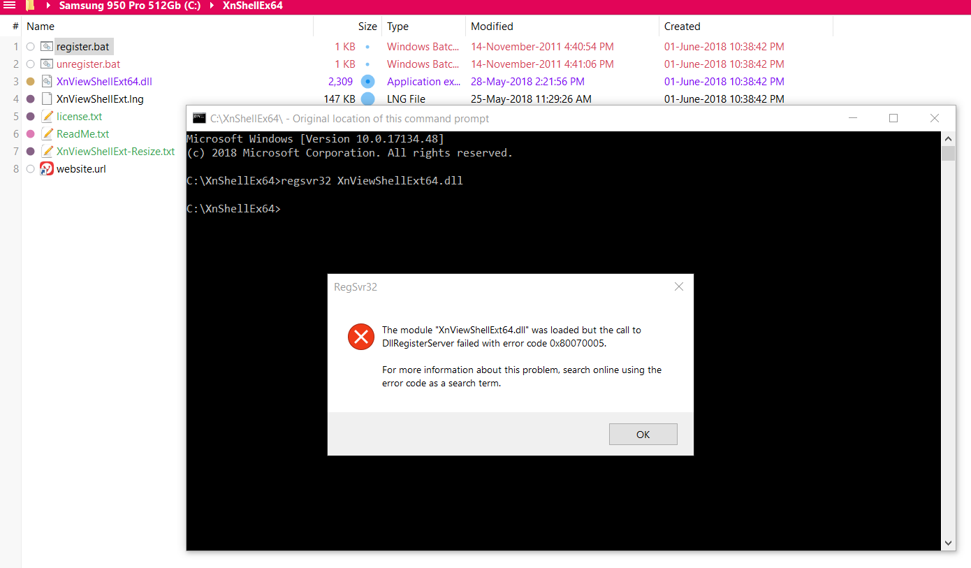 could you try to add in the folder this fileckit wrote: Fri Jun 01, 2018 12:49 pm Fails to register for me, both the BAT way (which should also have a CMD version for x64 setups) and good old CMD prompt way.