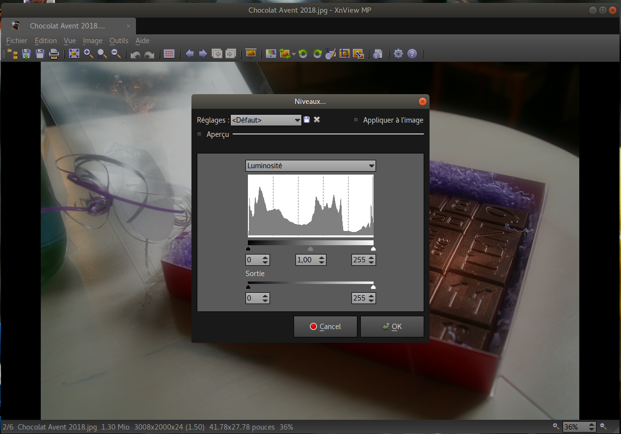 Sous Ubuntu 18.04.2 LTS 64b, je constate que les fenêtre des outils "ajuster" en mode image se trouvent bloquées en plein milieu de la photo, sans possibilité de déplacer la fenêtre, ce qui est bien gênant pour un outil de correction! Je viens de vérifier, il n' y a pas de problème sous Windows!