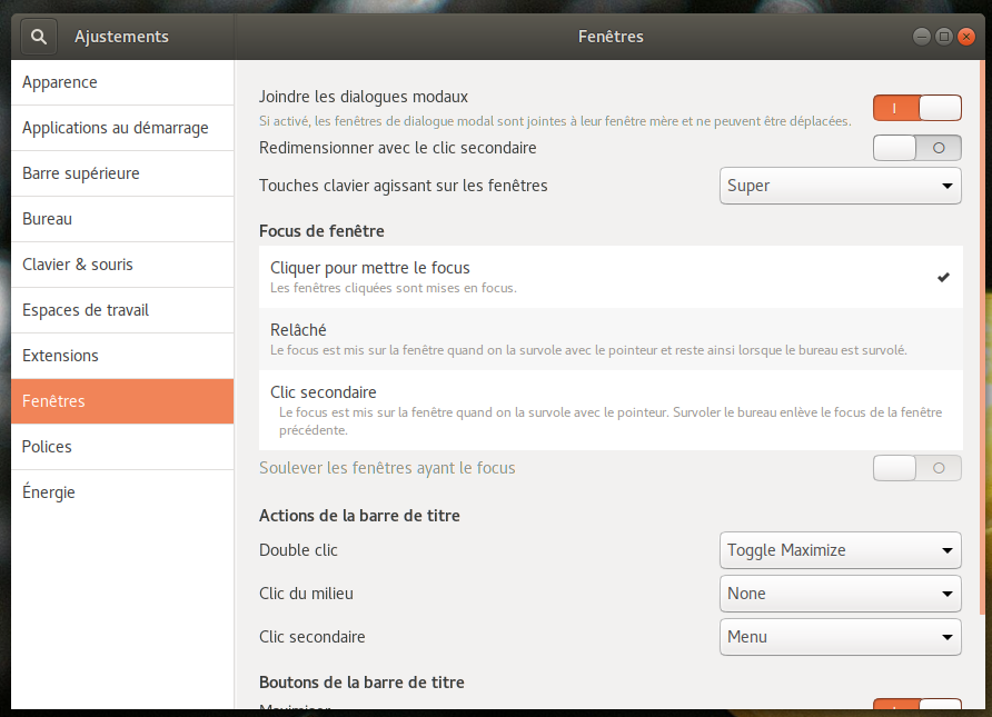 Il s' agit effectivement d' une option cochée par défaut dans les paramètres de fenêtres de Gnome.