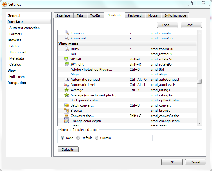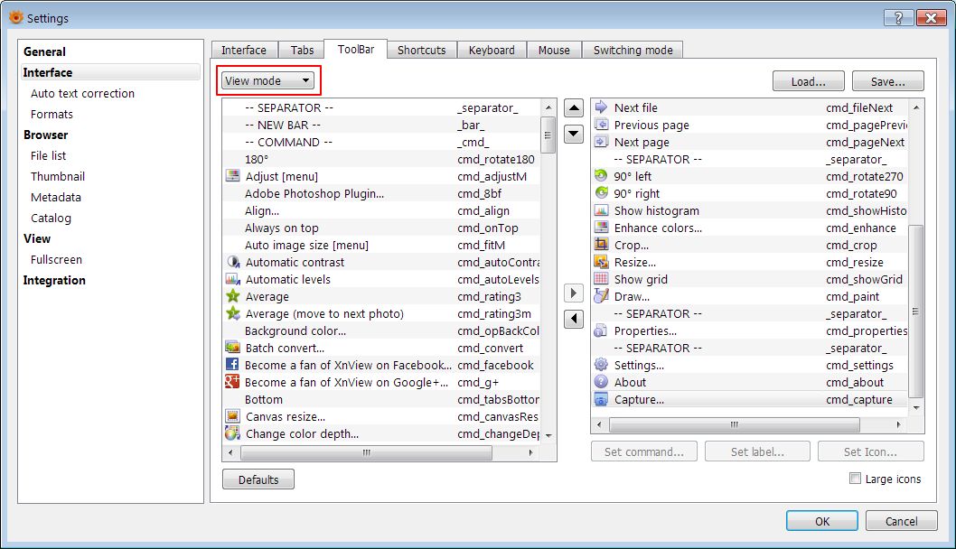 Wouldn't it be better if the Interface > Shortcuts design was similar to that for Interface > Toolbar, if that is possible?helmut wrote:The shortcuts are divided by modes: Browser mode and View mode