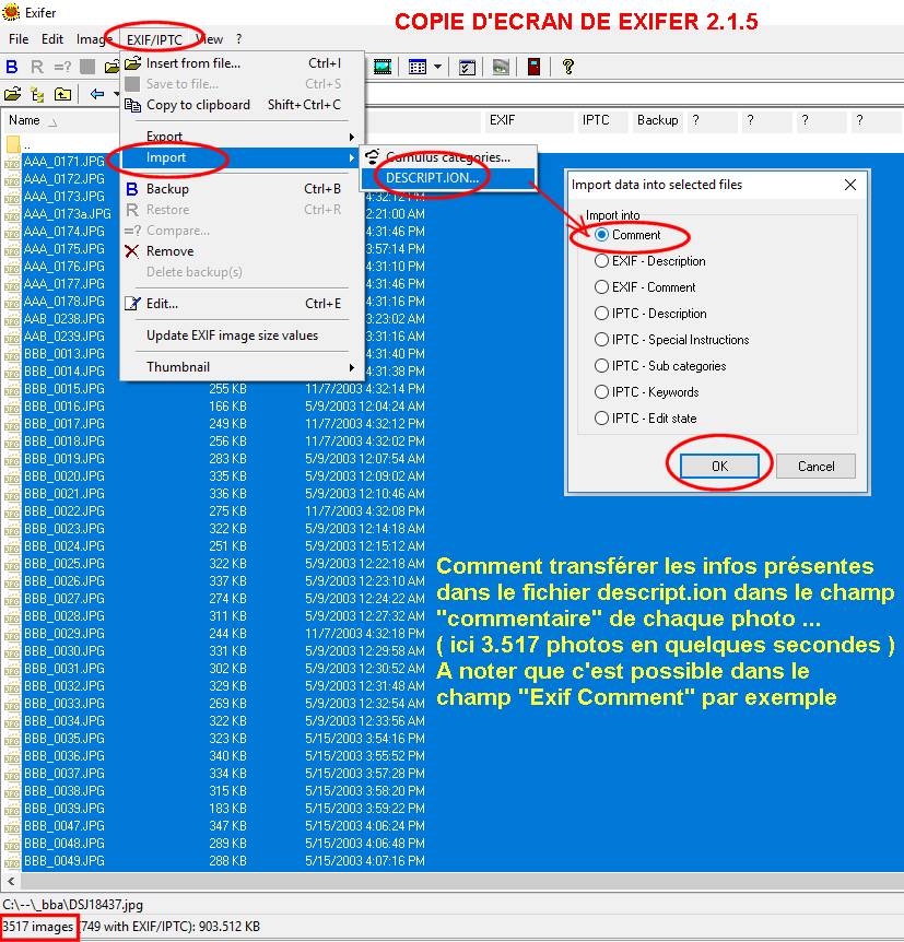 Transfert de descript.ion vers Exif