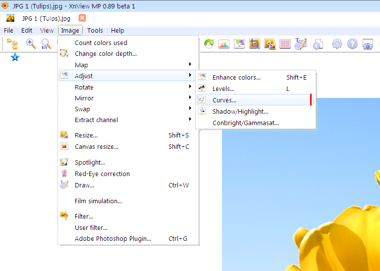 - The curves function is only available through the menu. In the toolbar there is the symbol for changing the image. But there the new Curves tool is missing. Please integrate it. Thanks