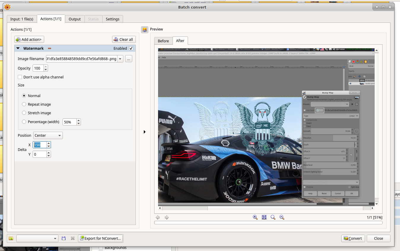 And I want to ask you to consider adding new functionality. The ability to apply to the image a relief mask taken from another image. Either as a new filter or in the watermark settings. It seems to me that an almost perfectly embossed mask is implemented in the Gimp program.
