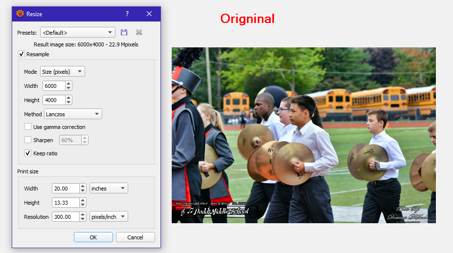 So here's a pic I cropped and resized setting the Height to 4000 and saved it then I undid the resize and redid the size, setting the width to 6000