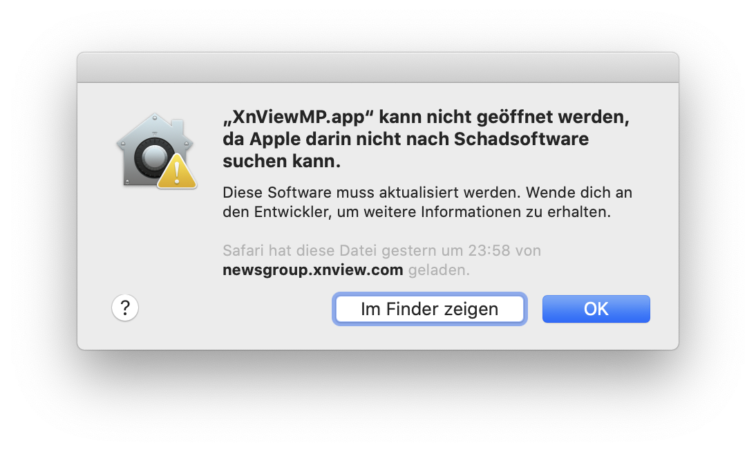 "“XnViewMP.app” can’t be opened because Apple cannot check it for malicious software."