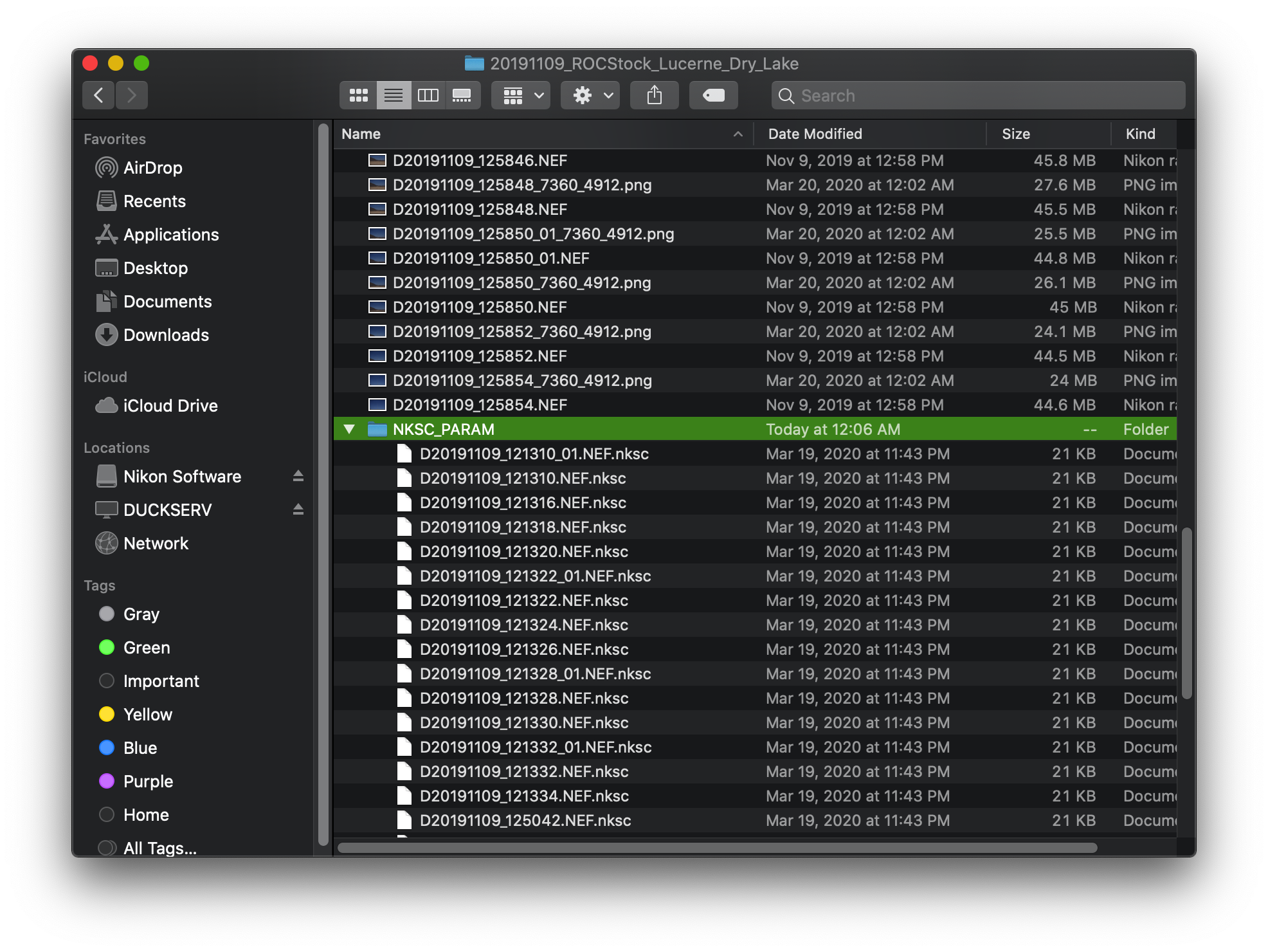 For the Nikon files, I've attached a screenshot of what the directory looks like after adding metadata to a bunch of Nikon raw NEF files. Note that in the NKSC_PARAM folder there is a .nksc file for every NEF. A zip of one of these files is also attached. Nikon ViewNX-i puts all of the metadata in there, along with any image adjustments you make. (There are no image adjustments in my example file).