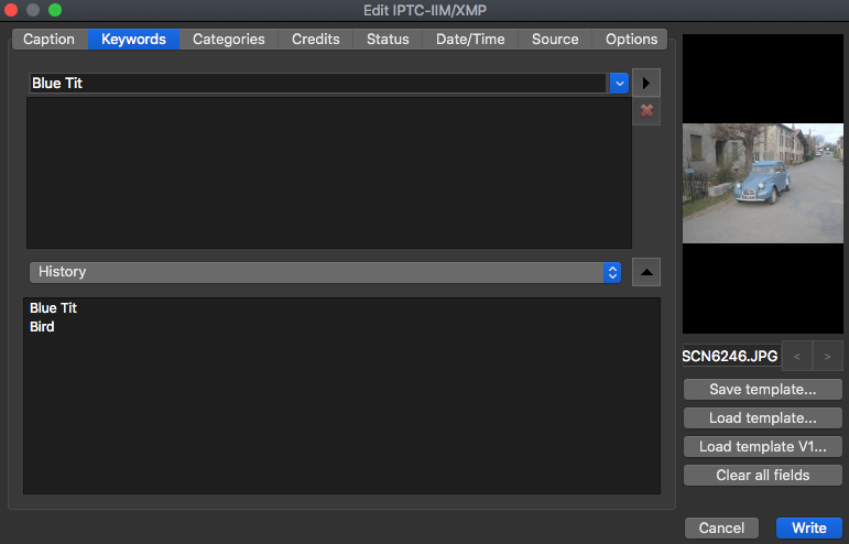 In addition, when I choose Tools > Metadata > Edit IPTC-IIM/XMP for a photo I have NOT assigned a Category to, I see some Categories mentioned under the Keywords tab - why? (eventhough the 2CV is blue, it's not a Bird nor a Blue Tit...)
