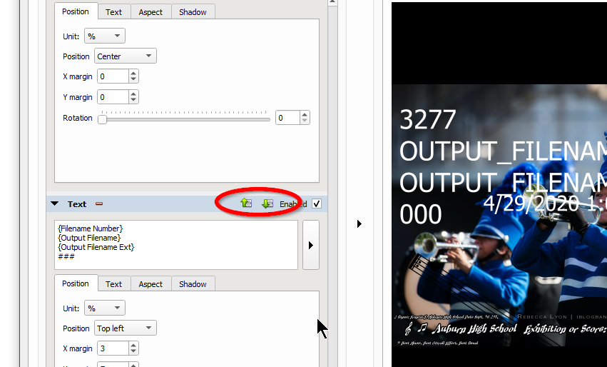 I have noticed that the standalone version of xnConvert  (1.85)  does not show the Up or down move icons. The actions/functions are there so if you know where about they are you can use them. Since I primarily used the standalone version of XnConvert  I never knew they were there I just stumbled across this because a feature I request was only available through the newer version on XnView that initiates XnConvert.