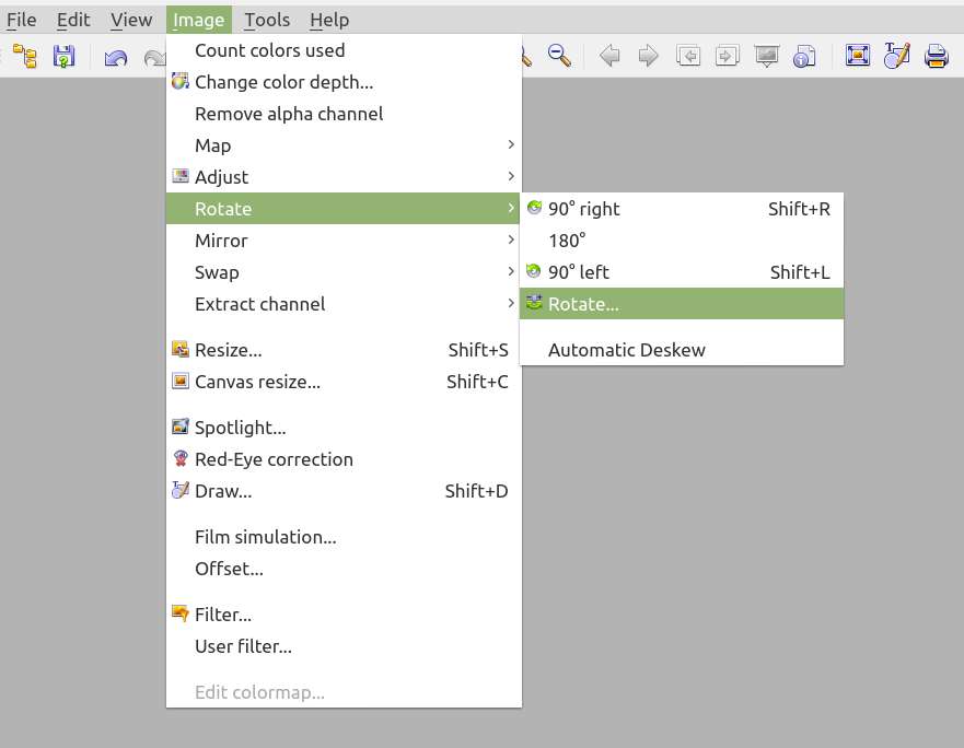 You are in the browser, not the viewer...cday wrote: Tue May 26, 2020 5:45 am In the viewer Image > Rotate > Rotate... provides a means of rotating by any angle...