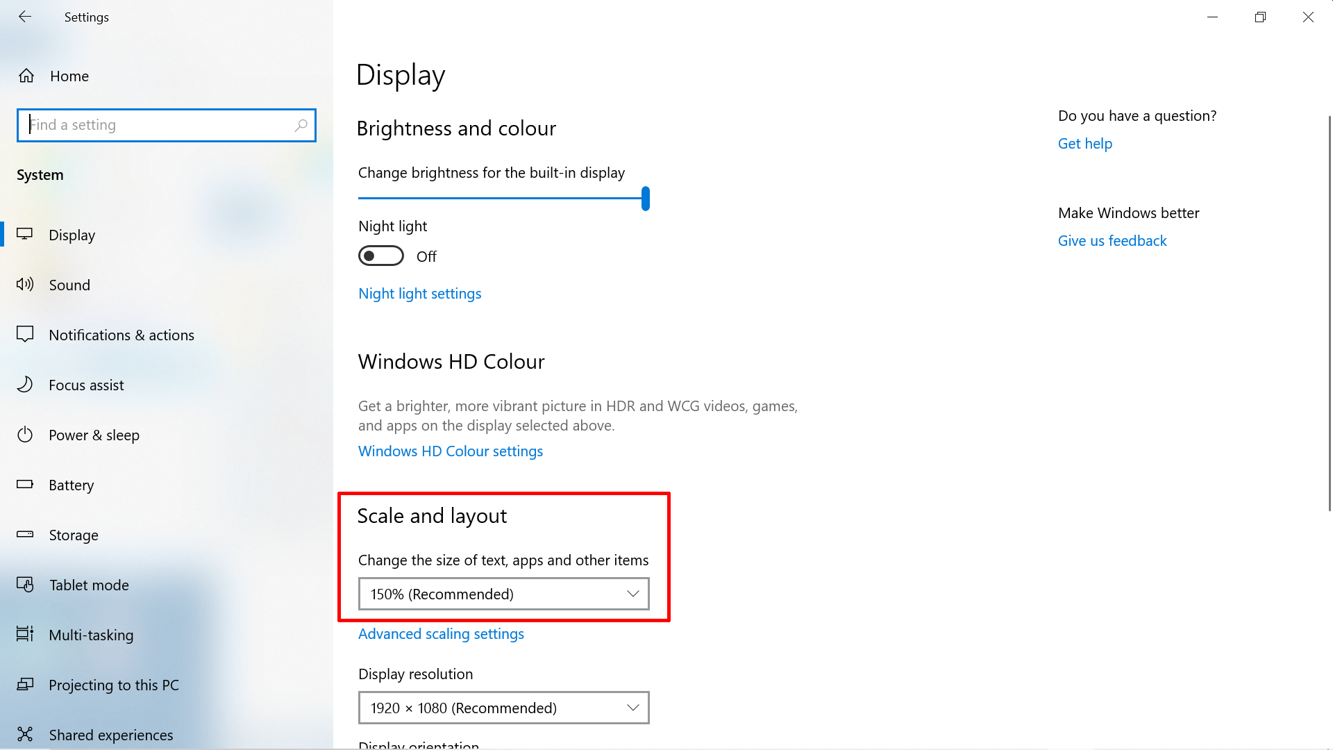 It's a standard small Windows 10 laptop, any screen scaling that may have been set should be global, I presume...