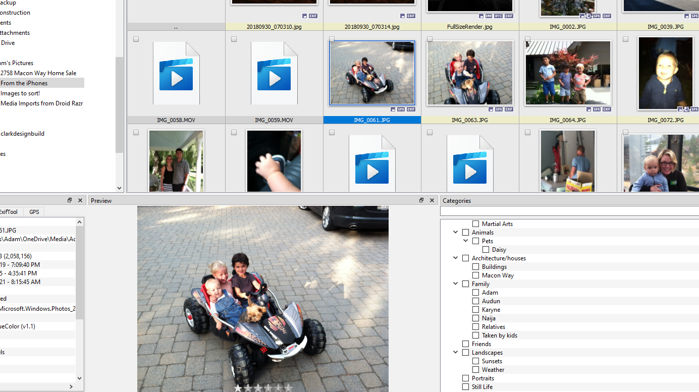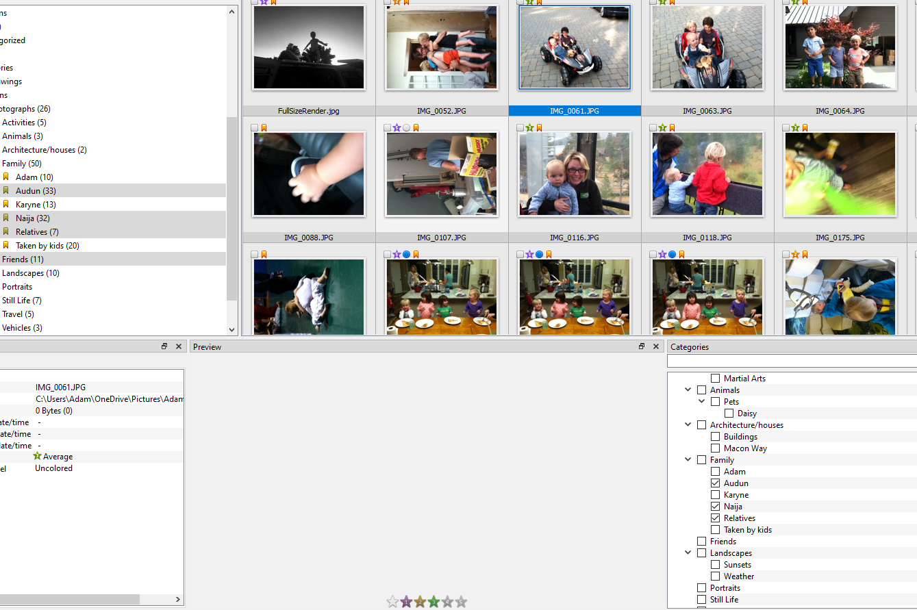 Hi! I spent some time categorizing photos yesterday. I created quite a few categories and subcategories as I'm managing my family's photo collection. Photos are stored on a OneDrive account owned by me. Nobody else has access to them.