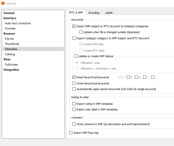 What's your settings>Metadata?