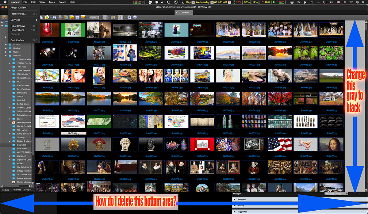 1. I cannot see how to remove the file windows at the bottom of the main thumbnail window. How?