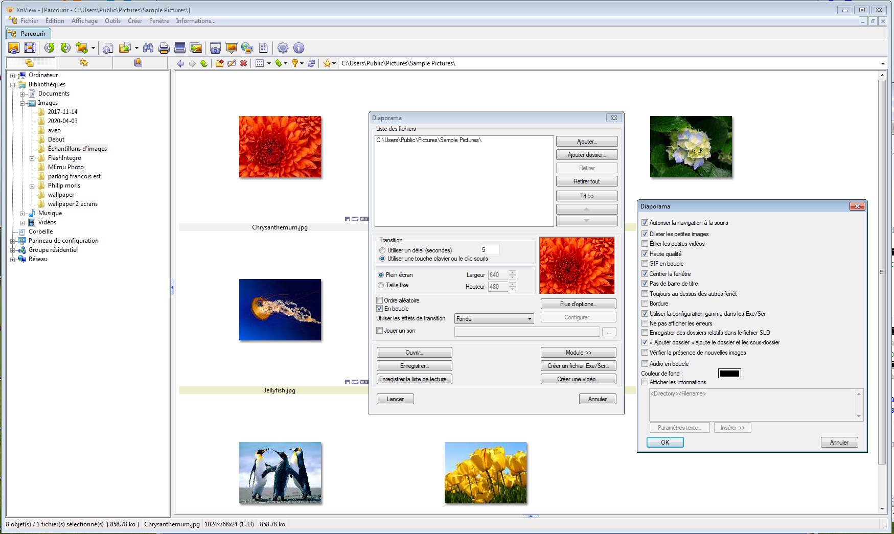 Je ne verrais pas les réactions clics souris sous la rubrique [Diasporama] des paramètres, de surcroît je ne comprends pas où tu as trouvé ces option du Diasporama ?