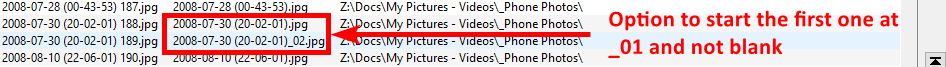 If it comes across a duplicate item it starts with a blank ending and then goes to _02.