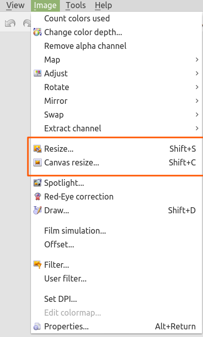 "Image > Resize" you can change the size of an image and make an image smaller or even larger. By changing the image's size, you'll change the contents of your image when using this function. The resampling methods and sharping help to get a good result when changing image size.