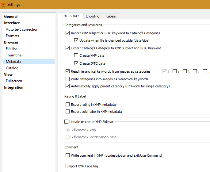 - Only 1 option ticked : "Export categories..." ( No IPTC and no XMP options)