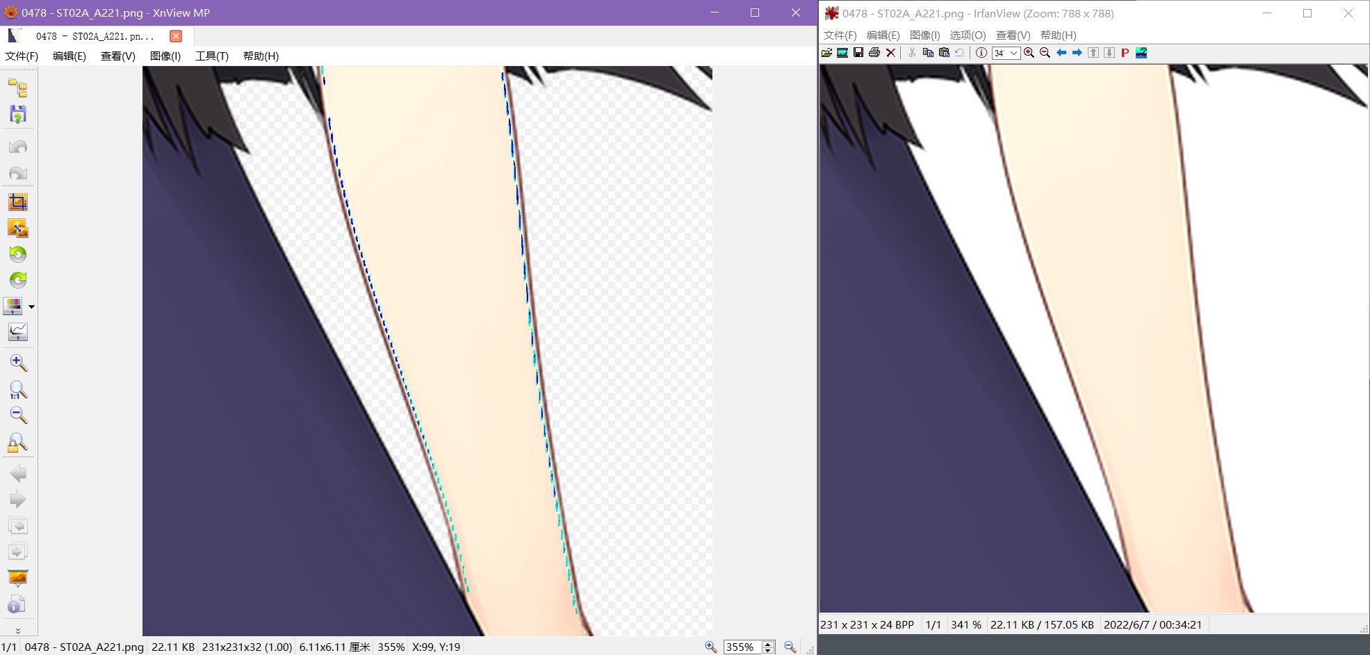 1.0: The colored dashed lines show when viewing png images with transparency using Lanczos