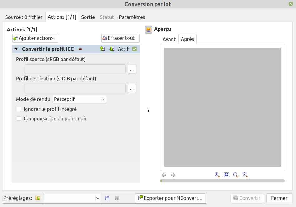 Est-il possible de passer un groupe de photos de profil Adobe RVB à sRVB ? .... et comment ?