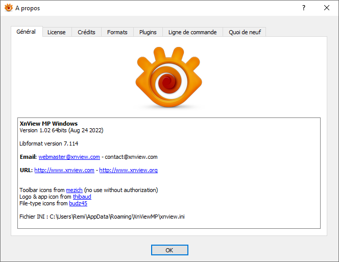 j'ai un lien .lnk vers le fichiers de configuration "... AppData\Roaming\XnViewMP\default.keys",