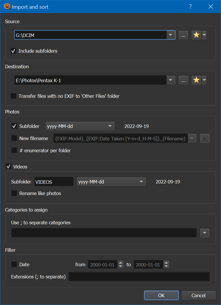 I'm trying to import files from a Pentax K-1 camera on my Windows PC. It's a mix of DNG and JPEG files in folders that are date-based. For example: