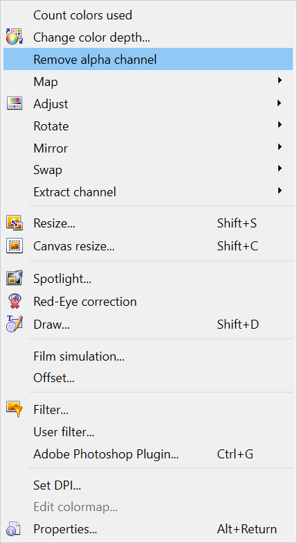 Remove alpha channel option shall be disabled (gray) if image has no alpha channel.