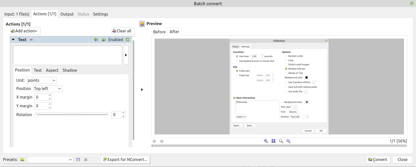 Edit:If so, it should be possible to reproduce by opening Batch convert non-maximised, selecting the Text action and ensuring that the window is wide enough to display the text options drop-down, then reducing the window height.