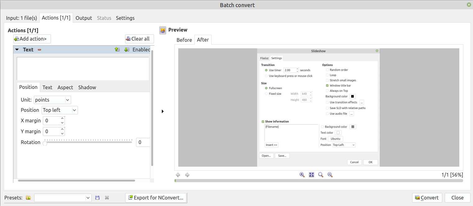 In XnView MP, the Batch convert window cannot be maximised and the Actions window is cropped unless the window is unusually wide: