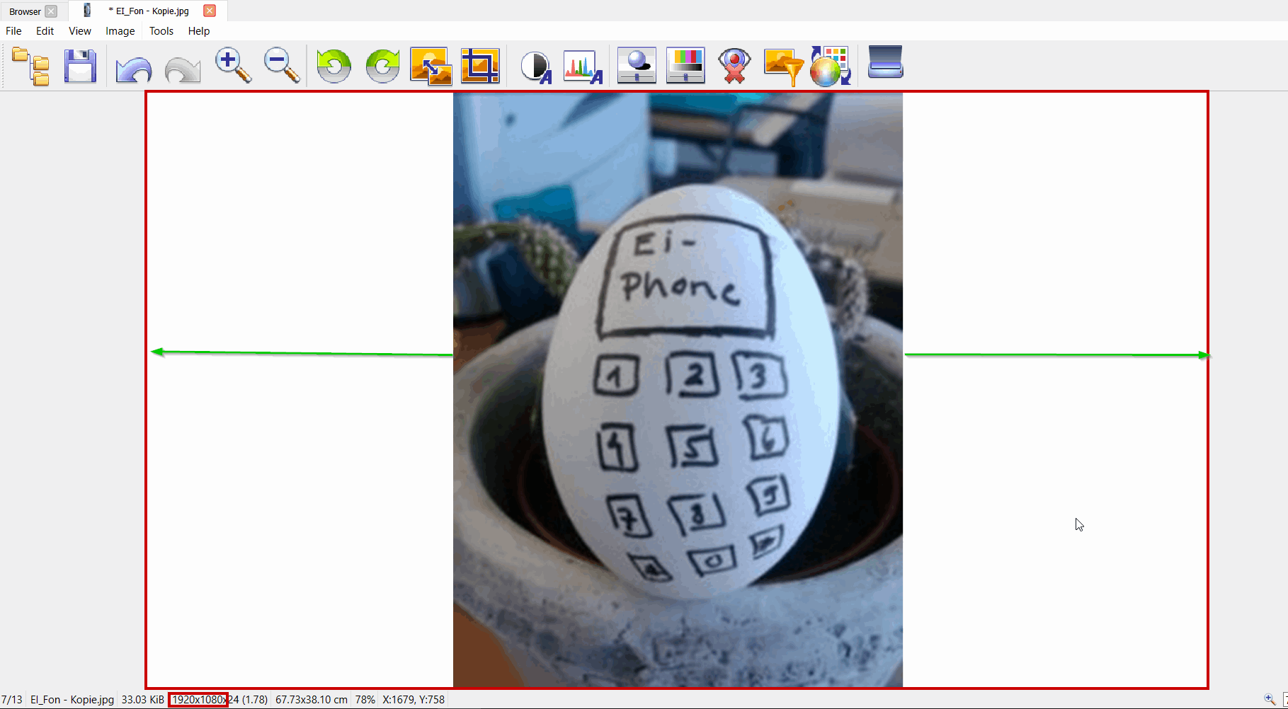 2) use "Canvas Resize" and ad color left & righ or up & below. Sample 1920 x 1080 px