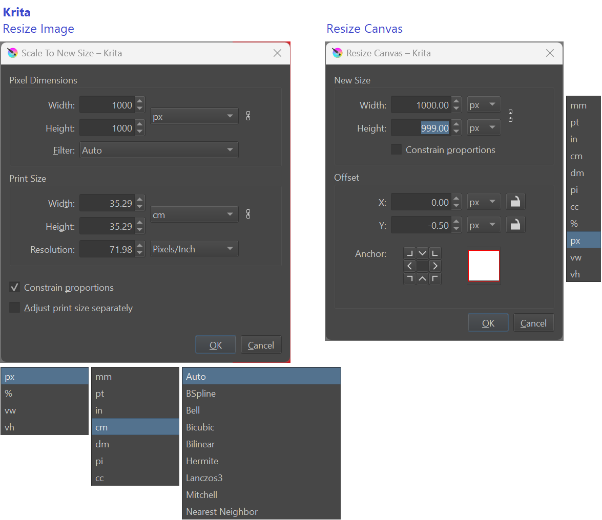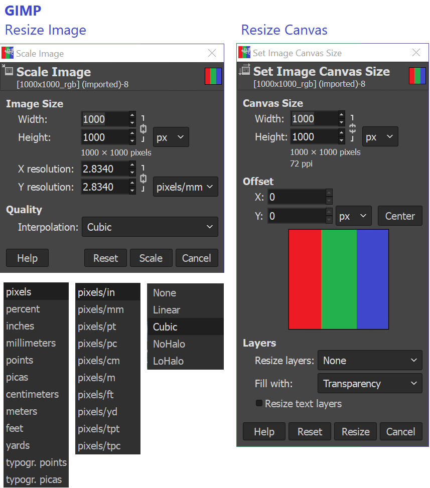 - dialog naming unified into 'Resize Image' and 'Resize Canvas'