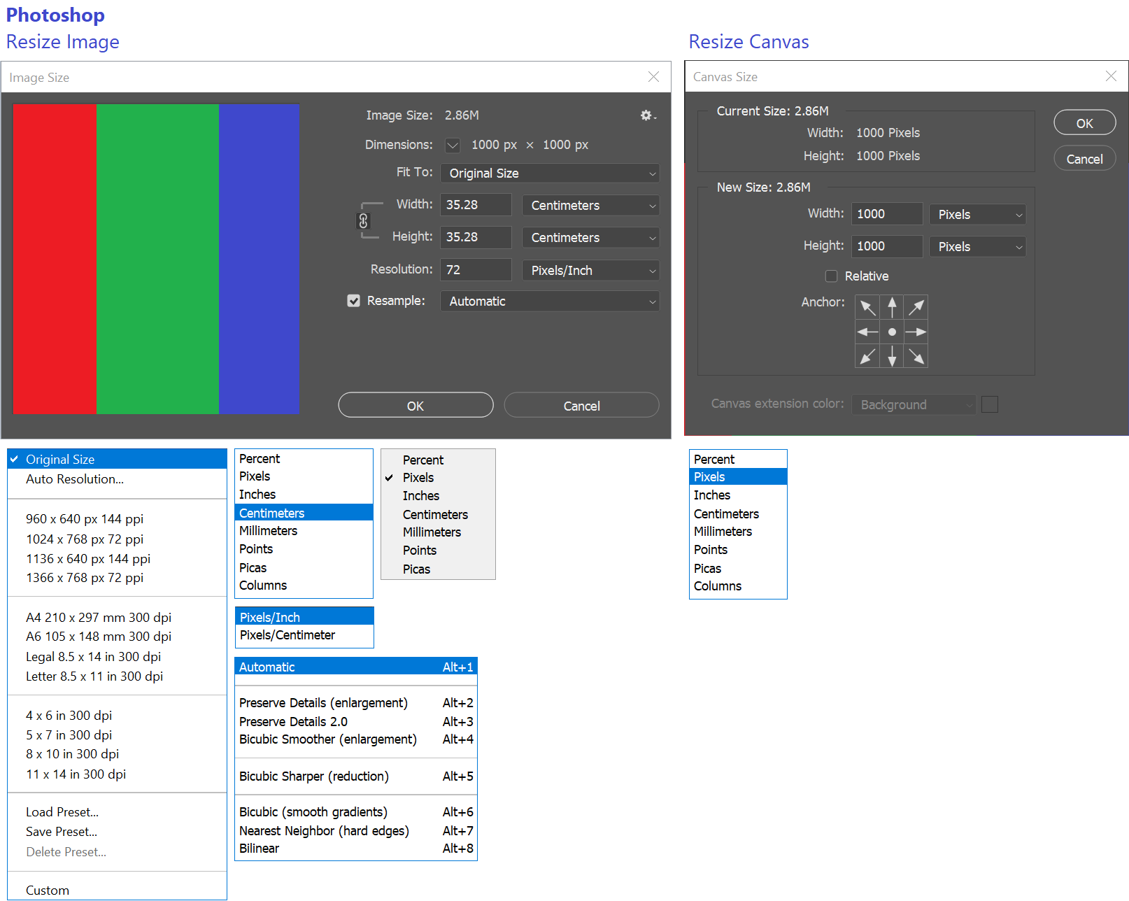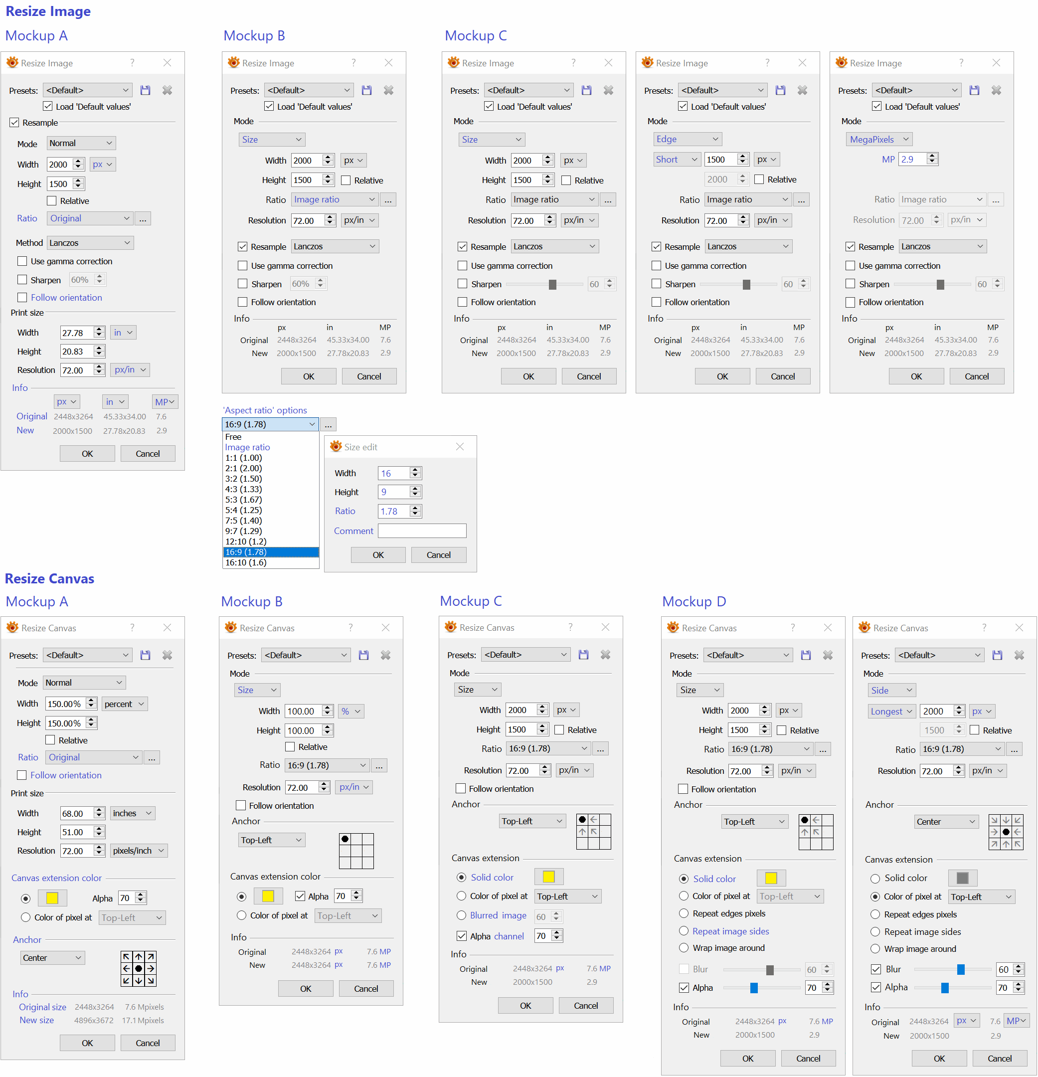 Unify all Image/Canvas resize tools and introduce some improved functionality.